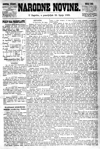 Narodne novine : 34,142(1868) / odgovorni urednik Ljudevit Gaj.