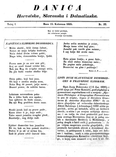 Danica horvatska, slavonska i dalmatinska : 1,32(1835) / redaktor Ljudevit Gaj.