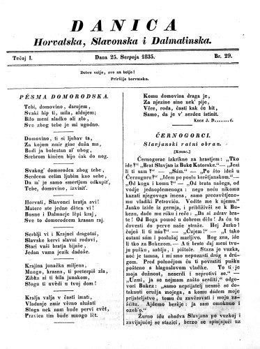 Danica horvatska, slavonska i dalmatinska : 1,29(1835) / redaktor Ljudevit Gaj.