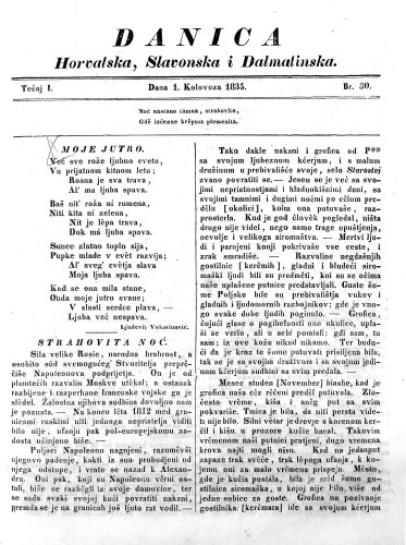 Danica horvatska, slavonska i dalmatinska : 1,30(1835) / redaktor Ljudevit Gaj.