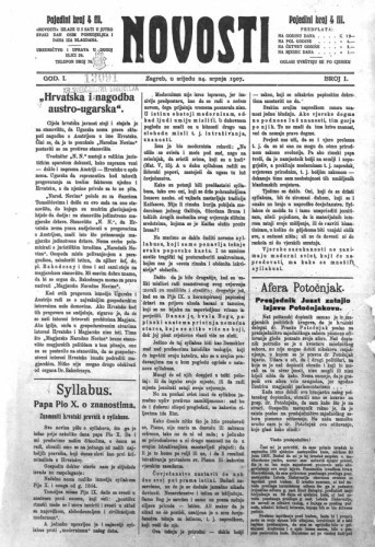 Novosti : 1,1(1907) / odgovorni urednik Mirko Dečak.