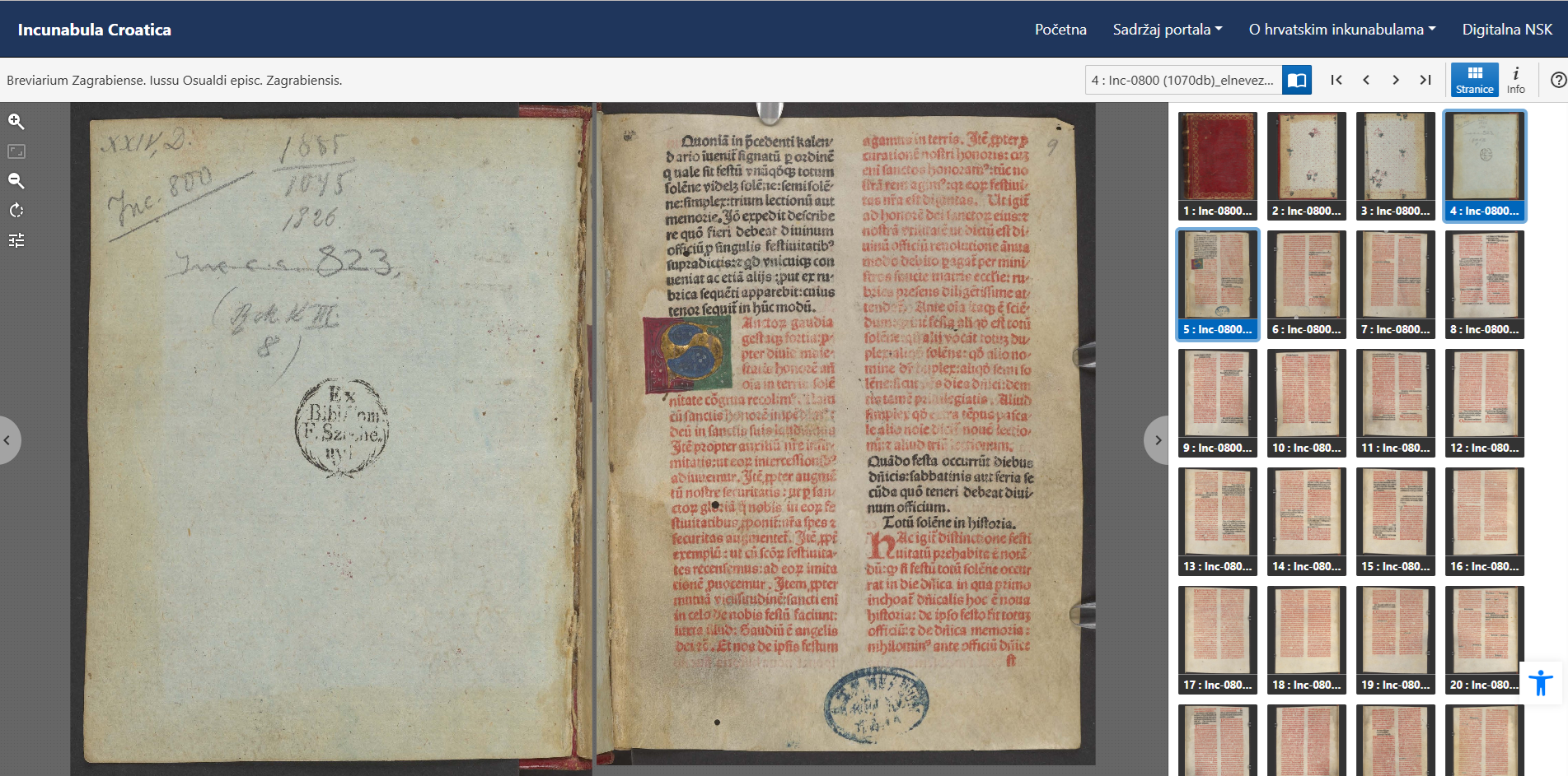 Uz metapodatke primjeraka Misala po zakonu rimskoga dvora u stranim knjižnicama, na portalu je dostupna i cjelovita preslika inkunabule Breviarium Zagrabiense (1484.) čiji se izvornik čuva u zbirci inkunabula ustanove Országos Széchényi Könyvtár (Budapest), a koju je Nacionalna i sveučilišna knjižnica u Zagrebu nabavila u 2025. godini.