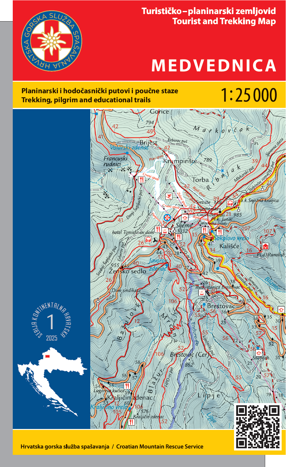 Turističko-planinarski zemljovid Medvednica = Tourist ans trekking map : planinarski i hodočasnički putovi i poučne staze = trekking, pilgrim and educational trails